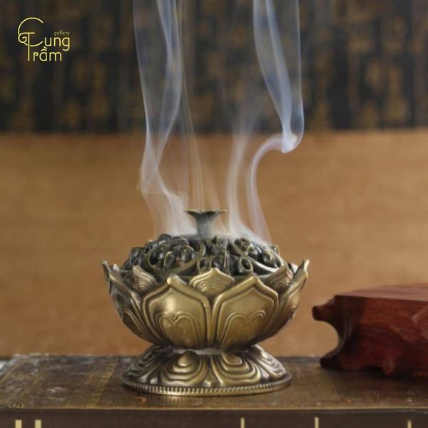 - Bước 1: Đặt nụ trầm hoặc bột trầm vào lư xông, châm lửa để tạo làn khói lan tỏa đều và ổn định. Khi khói bắt đầu tỏa ra nhẹ nhàng, không quá dày, đó là thời điểm thích hợp để bạn tiến hành tẩy uế.