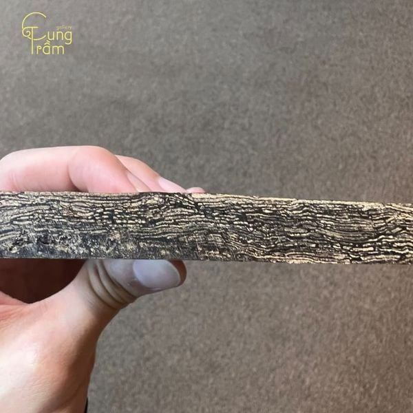 “Sánh”: Là những lát mỏng như tờ giấy được tách từ thân cây Dó Bầu, chứa lượng tinh dầu trầm rất cao tích tụ qua nhiều năm. Lớp sánh này có bề mặt đen bóng, giàu dầu và là phần quý giá nhất của gỗ trầm, mang mùi thơm tự nhiên đặc trưng.
