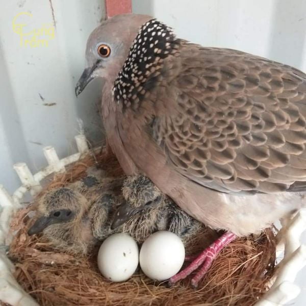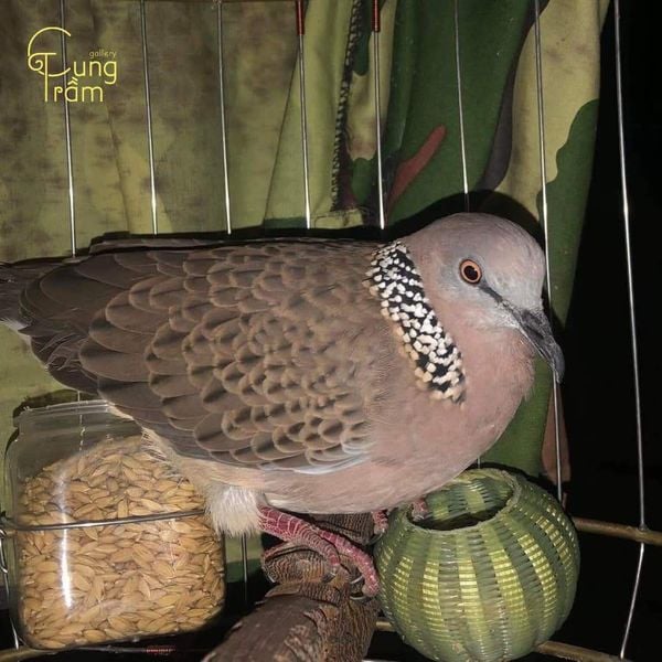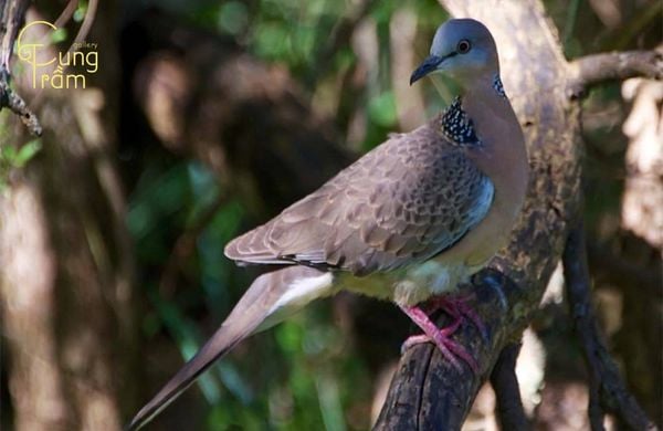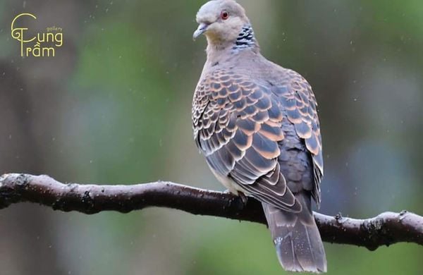 Về hình dáng: Chim cu gáy có thân hình thon gọn, kích thước vừa phải, bộ lông chủ yếu mang màu xám nâu hoặc nâu tro, giúp chúng dễ hòa mình vào môi trường tự nhiên. Điểm nhận biết đặc trưng nhất của loài chim này nằm ở phần cổ, nơi có khoang lông đen viền trắng hoặc các chấm trắng nhỏ, tạo nên dấu hiệu rất riêng, khó nhầm lẫn với các loài chim khác.