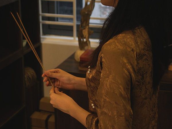 Tẩy sạch uế khí: Trước khi đặt mâm ngũ quả lên bàn thờ, người Việt thường có thói quen đốt một nụ trầm hoặc dùng nước trầm để lau dọn ban thờ. Mùi hương thanh khiết của trầm giúp thanh lọc không gian, xua đuổi những năng lượng tiêu cực của năm cũ, dọn chỗ cho những điều may mắn ngự trị trên mâm quả.